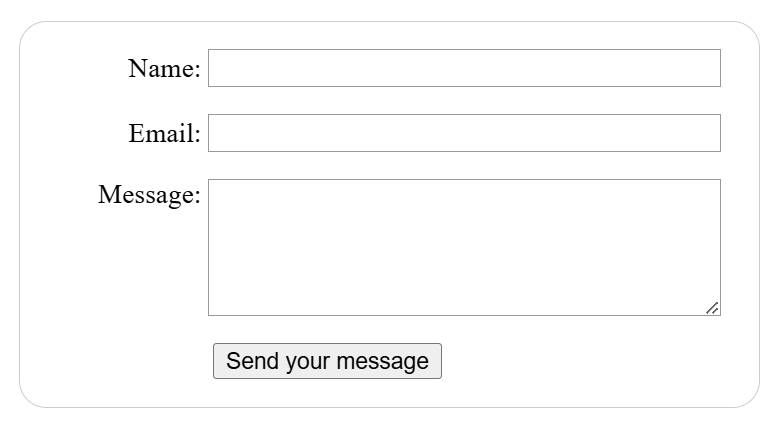 The form we'll build will contain three text fields and a single button. We'll ask the user for their name, email, and the message they want to send. Pressing the button will send the entered data to a web server for processing.